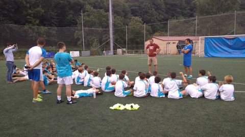 El delantero ovetense pasó un agradable rato con los niños del «Campus Rascayú» en Morcín