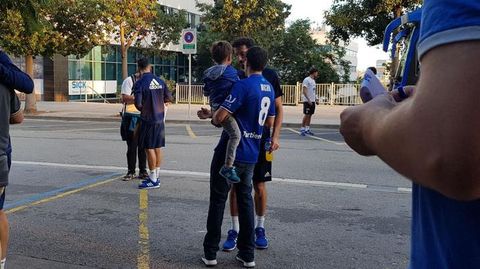 Los jugadores azules notaron el calor de la afición carbayona en la ciudad condal