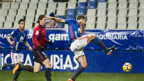 El césped volvió a ser protagonista debido a la lluvia acumulada sobre él, pero el Oviedo supo sobreponerse a las circunstancias: «Anquela no nos dijo nada diferente, sólo intensidad y que había que jugar algo más directo. Nos adaptamos al campo y ha dado resultado».