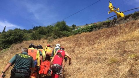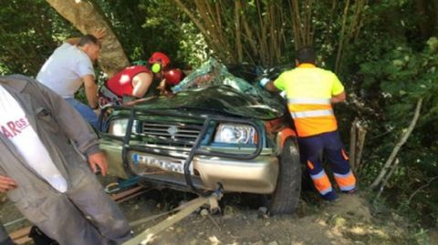 Los dos accidentados tuvieron que ser excarcelados del todoterreno en el que viajaban por los bomberos del Servicio de Emergencias, que se personaron en el lugar del accidente tras un aviso recibido a las 12,50 horas. Tras asegurar el vehículo con cuerdas y eslingas para evitar que cayese al río, los bomberos procedieron a abrir hueco retirando la puerta del conductor y uno de los pilares del coche. Posteriormente evacuaron a los dos afectados, en coordinación con el equipo médico, inmovilizados, con un collarín y una férula de extricación, y con ayuda de la tabla de rescate.