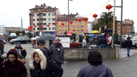 La localidad sierense, que acoge la mayor colonia china de Asturias con 120 censados, celebra una animada fiesta con ocasión del año nuevo en un ambiente de hermanamiento