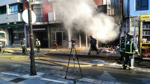 El humo ha obligado a atender por intoxicación leve a cuatro de los diez inquilinos en el hospital Valle del Nalón. Los bomberos siguen trabajando en el siniestro