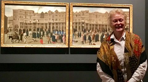 ¿Por qué tiene tan claro que se trata de Lisboa y no de Sevilla, por ejemplo, que en el siglo XVI era junto con Lisboa la ciudad más importante del sur de Europa? «Porque la variedad de razas y estilos de vestir de los personajes, de los animales, de los objetos exóticos, y de la riqueza que se percibe a través del cuadro, además de la propia arquitectura de la Rúa dos Mercaderes, nos demuestra que estamos hablando de Lisboa y no de otra ciudad. Solo Lisboa tenía esto a finales del siglo XVI, Sevilla, a pesar de ser muy rica, no la igualaba en diversidad y riqueza. Por eso la hemos llamado en esta exposición ‘la ciudad global’», afirma tajante Jordan. La investigadora estadounidense añade: «Llevamos cinco años estudiando en profundidad el lienzo y preparando la exposición. Hemos elaborado un documental en el que damos todos los detalles de cómo era la bulliciosa Rúa de los Mercaderes, el corazón de la ciudad, destruida en 1755».