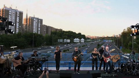 El propio Alejandro Sanz y Martínez-Almeida han destapado la placa homenaje al interprete en este puente para a continuación dirigirse a un escenario instalado en este enclave para realizar una breve actuación con su banda (retransmitida por streaming) tras cuatro meses «tan difíciles para todos».