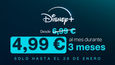 - Disney+ estándar con anuncios por 4,99 €/mes durante tres meses (ahorro total de 6 € frente al precio habitual)