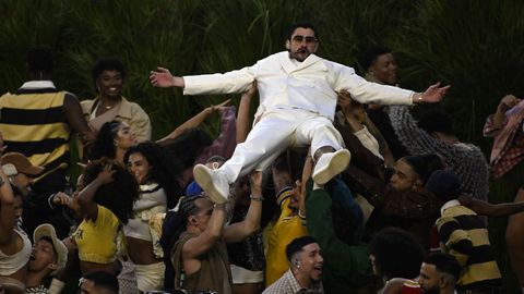 09 feb 2026 . Actualizado a las 14:12 h.Bad Bunny ha pasado a la historia de las actuaciones de medio tiempo de la Super Bowl esta madrugada, convirtiendo el californiano Levi's Stadium de Santa Clara en toda una fiesta puertorriqueña con Ricky Martin y Lady Gaga como invitados de lujo. El artista cuidó todos los detalles de su espectáculo para una audiencia potencial de 130 millones de personas de más de un centenar de países.Benito Antonio Martínez Ocasio (nombre real del cantante) en 13 minutos dejó sobre el terreno de juego grandes mensajes de unidad para América en uno de los momentos más tensos de la era Trump a causa de las deportaciones masivas llevadas a cabo por el ICE (Servicio de Control de Inmigración y Aduanas), además de sentar precedente cantando un repertorio íntegramente en español y lucir un atuendo de una marca española tan icónica como Zara, la firma de moda gallega fundada por Amancio Ortega. En su intervención le acompañaron en la tradicional casita personalidades latinas que han triunfado en Estados Unidos como los actores Jessica Alba o Pedro Pascal y las cantantes Karol G y Becky G. El simbolismo fue la mejor arma de Bad Bunny en el medio tiempo, el mejor escaparate de los músicos para que sus temas tengan alcance mundial y que habitualmente utilizan para enviar importantes mensajes que quizás una gran mayoría de los espectadores haya pasado por alto.