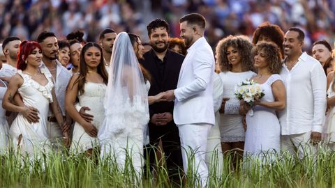 Uno de los detalles más impactantes es que en los minutos que duró la actuación de medio tiempo de la Super Bowl en las que Bad Bunny quiso transmitir la realidad de Puerto Rico, lo hizo tan al extremo que incluso una pareja se casó en directo en el estadio.