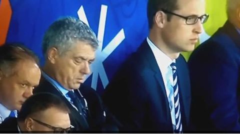 El máximo representante de la UEFA en la Eurocopa no pudo reprimir su sueño sentado al lado del príncipe Guillermo de Inglaterra