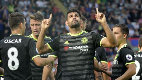 11 sep 2016 . Actualizado a las 19:41 h.Un doblete de Diego Costa evitó la primera derrota de la temporada del Chelsea, que consiguió el empate en Swansea (2-2) gracias al acierto del delantero internacional español a nueve minutos del final. La igualada, sin embargo, aparta del liderato al equipo de Antonio Conte, que había ganado los tres partidos anteriores de la Liga de Inglaterra que domina, en solitario, el Manchester City de Pep Guardiola.