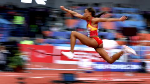 La atleta gallega brilló en su primer salto con 14.13 metros, pero no pudo mejorar en los cinco siguientes