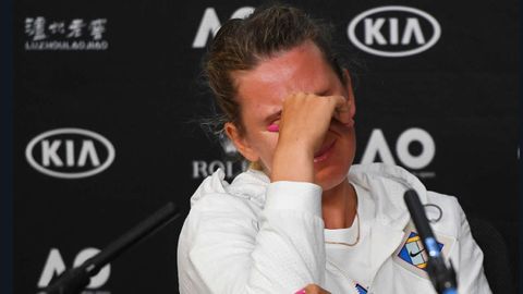 La tenista bielorrusa rompió a llorar en la sala de prensa al recordar los problemas que ha pasado con la custodia de su hijo