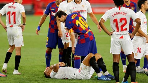 El equipo azulgrana comenzó bien. Con una actitud completamente diferente a la del último partido ante el Leganés. Intenso en la presión alta y con un buen juego combinativo en el que Messi desmantelaba la defensa local a base de chispazos. El argentino estuvo a punto de marcar uno de sus clásicos golazos de falta directa, pero Koundé fue raudo hacia su portería y la sacó de cabeza en línea de gol.