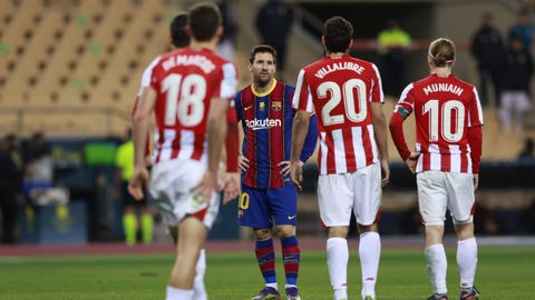 También Marcelino desplazó a toda su plantilla mientras intenta recuperar a dos defensas titulares que llevan diez días con problemas musculares: el central Yeray y el lateral zurdo Yuri. Inquieta el estado físico de Iker Munian, pieza clave en los rojiblancos pero aparentemente mermado e incluso con una visible cojera al subirse y bajar al autobús del equipo. El técnico asturiano intentará repetir la receta de la agresividad que le dio resultado en la Supercopa de enero en La Cartuja de Sevilla, el mismo escenario de esa final. Aquel día un renqueante Messi, que jugó lesionado, fue expulsado en la prórroga.