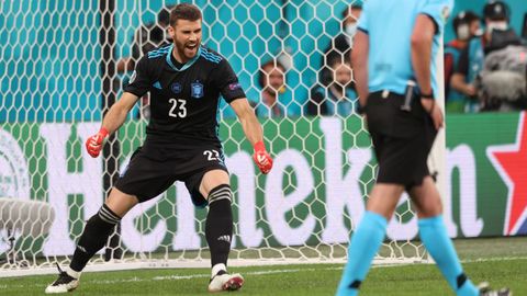 Desde la pifia del gol de Croacia la figura del portero del Athletic ha ido creciendo día a día. Ante los balcánicos con dos paradas decisivas y este viernes deteniendo dos penaltis, mal tirados por Schar y Akanji, pero perfectamente adivinados por el vasco, que se fue al suelo con decisión en ambos casos. «Me he venido un poco arriba, es lo que me pedía el cuerpo, no suelo ser así. Es un momento bastante eufórico, la rabia que tengo dentro y las ganas las saco al exterior», comentó Unai Simón tras la clasificación. Curiosamente paró más penaltis en la tanda de San Petersburgo que en toda la temporada, en la que solo fue capaz de neutralizar un lanzamiento de Jaime Mata. Los otros cinco fueron para dentro.