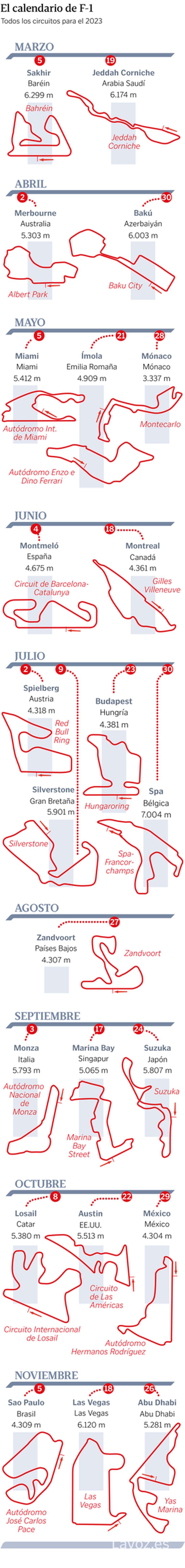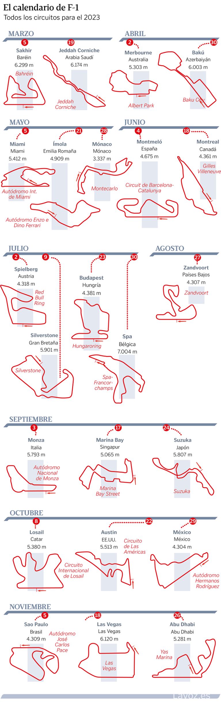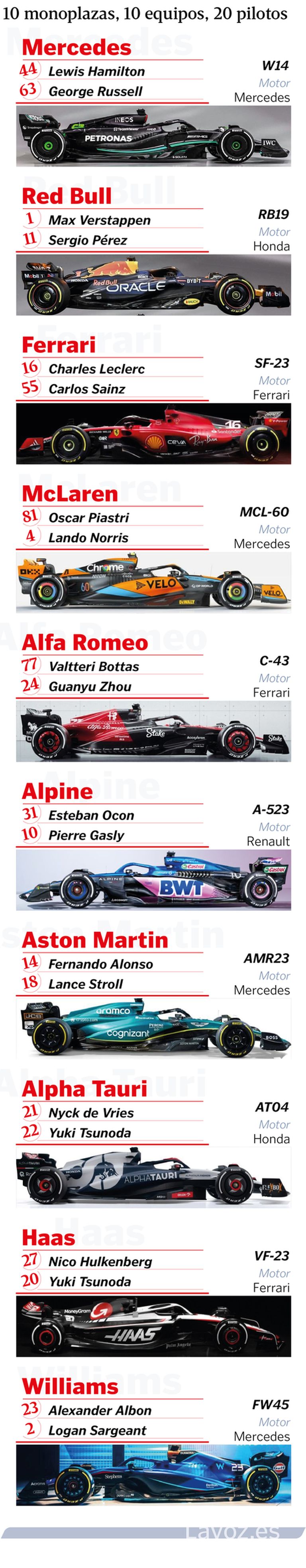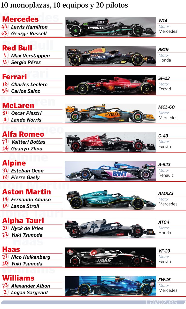 04 mar 2023 . Actualizado a las 13:35 h.Siempre es el mismo circo. El Gran Circo. Arranca la temporada con los aficionados de cada país pensando que esta vez sí, esta vez le van a cortar las alas a Red Bull, como ya sucedió en el 2014, y Verstappen seguirá los pasos de Vettel. Y las mejores bazas serán los pilotos patrios, por supuesto, que tienen los coches más ilusionantes de la historia.