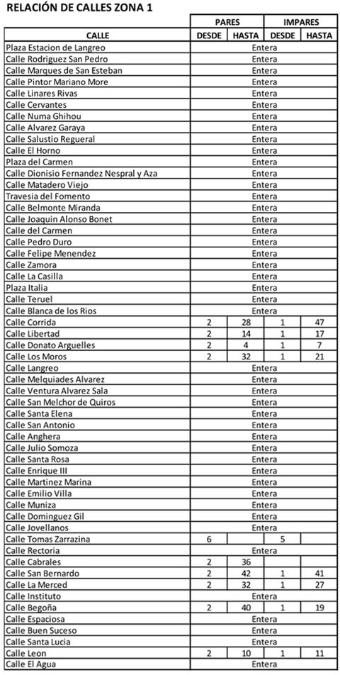 Los siguientes números de calle pasan a formar parte de la Zona 1: