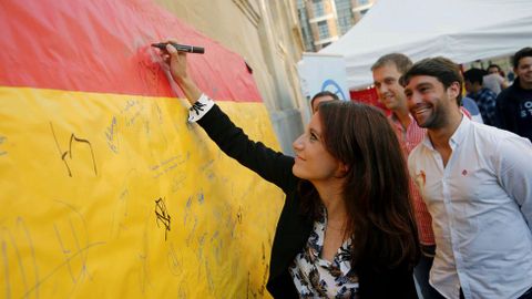 La secretaria de Estudios y Programas del PP ha participado en el centro de Gijón en un acto organizado por Nuevas Generaciones de Asturias, en el que se juntaron firmas por la unidad en una bandera de España y se repartieron lazos con los colores rojo y amarillo. El diputado del PP en la Junta General del Principado de Asturias, Luis Venta, ha pedido a «los golpistas» que «dejen de seguir coaccionando» porque «la legalidad se va a imponer». «El presidente Mariano Rajoy tiene una hoja de ruta clara para acabar con la ilegalidad», ha añadido.