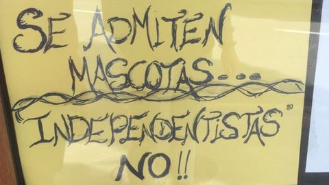06 nov 2017 . Actualizado a las 18:49 h.El bar Tu café de Gijón ha creado polémica al colgar un cartel antiindependentista a la puerta del local: «Se admiten mascotas...Independentistas no». El cartel se ha viralizado durante los últimos días a través de las redes sociales y continúa creando controversia debido a la diversidad de opiniones que ha generado. A pesar de haberse desactivado la página del local en Facebook, este cartel sigue dando que hablar en redes sociales con Twitter y Google +, donde ha llegado a generar más de 300 reseñas.