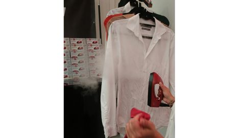 «Mire, mire, esto sí que es interesante», dice la vendedora mientras plancha fácilmente una camisa arrugada con un pequeño aparato del que sale vapor. La plancha en cuestión no pesa apenas y es indestructible al ser de PVC. De hecho, una de las demostraciones de su dureza consiste en ponerse encima de ella. Solo necesita una pequeña cantidad de sal común y agua para que, una vez enchufada, empiece la magia. El vapor alisa cualquier tejido o prenda, «directamente en la percha» o incluso en la cama. La base, pese a que está caliente, no quema y solo el lino tiene que colocarse en una superficie de madera. Además, hace limpieza en seco y, para ello, la vendedora manda a las potenciales clientes pisar una americana negra. La cuelga en una percha y, con la ayuda de un cepillo que se pone en la base de la plancha, las manchas de barro van desapareciendo. Una cuesta 40 euros, pero por estar en la feria dos cuestan 50.