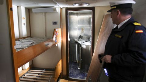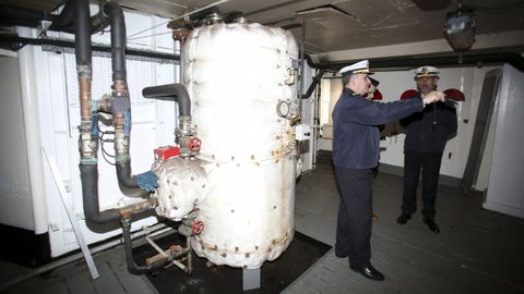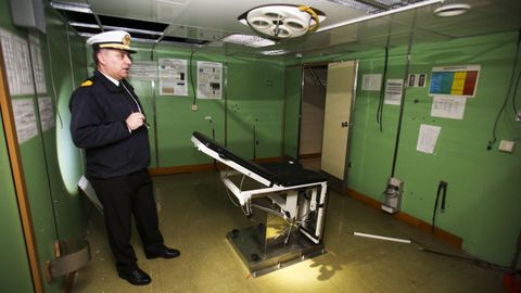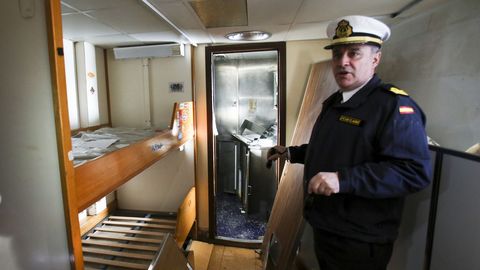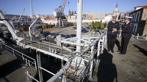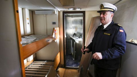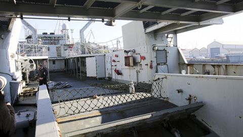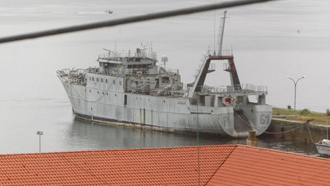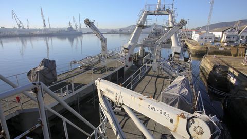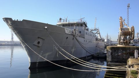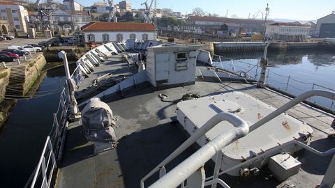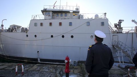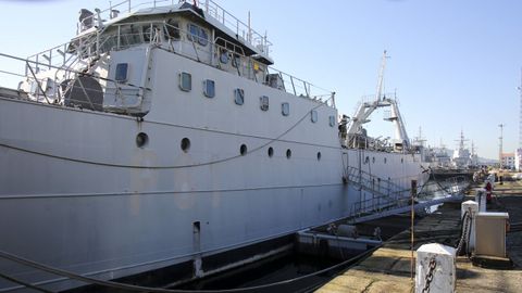 Ahora el buque permanece amarrado en la base naval de A Graña, a la espera de que un remolcador lo transporte hasta la planta de descontaminación y reciclaje, ubicada en el puerto gijonés de El Musel.