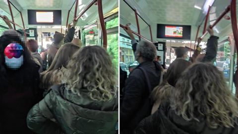 «Nos estamos acostumbrando a demasiadas palabras huecas y muy pocas medidas reales y eficaces para controlar la pandemia», critican desde la FAV, mostrando las imágenes en las que los usuarios del transporte pùblico, aunque lleven la mascarilla obligatoria, no pueden mantener la distancia de seguridad que se recomienda en los espacios cerrados.