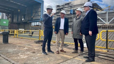Acompañado por Jacobo López, secretario de Industria de la Agrupación Municipal Socialista de Gijón y miembro de su candidatura a las elecciones municipales, Floro visitó el astillero junto a Juan Paíno, director de Armón Gijón, y José Ramón Fernández, presidente del grupo.