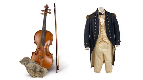 El traje y el violín de Master and Commander alcanzaron un precio de 72,000 y 84,000 euros respectivamente.