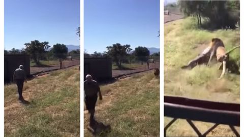 El hombre, de 72 años y dueño del safari, entró en el recinto donde estaba el animal totalmente confiado. De repente, el león va hacia a él, lo tira al suelo y se lo lleva hacia unos arbustos arrastrándolo. Todo, ante la atónita mirada de algunos turistas que gritan asustados. Unos segundos después se escuchan varios disparos y el león suelta a su presa.