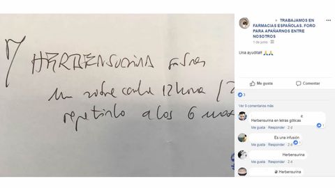 Pedimos a Blanca acceso para entrar en el grupo y bucear un poco. Pronto nos damos cuenta de la cantidad de comentarios y dudas que los farmacéuticos de toda España, incluidos muchos gallegos que forman parte de esta comunidad virtual, tratan de resolver en este grupo. Intentar descifrar algunas letras es imposible. «Algunos que ya tenemos experiencia somos capaces de leer casi todo», nos cuenta Blanca.