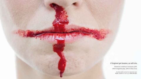 Las imágenes creadas para esta campaña bajo el título The Not-So-Beautiful Game (el lado no tan bonito del juego) por la agencia J. Walter Thompson London muestra moratones y sangre que forman las banderas de esos países en el rostro y el cuerpo de algunas mujeres.