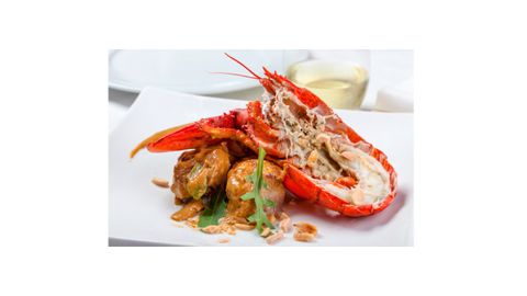 Ahora toca cortar el bogavante al gusto: en rodajas, longitudinal… y dejarlo cocinar junto con el pitu durante cinco minutos más. ¡Y listo para degustar junto con la salsa!