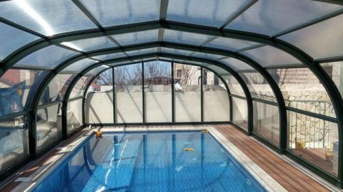 Los modelos de cerramiento bajos también apoyan en la seguridad, además de un discreto diseño que permite el mínimo impacto visual en el entorno. Son ideales para aquellos que desean proteger su piscina y alargar la temporada de baño, con una agradable y sencilla estructura.