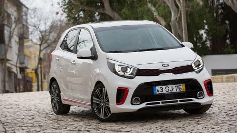 De perfil este nuevo modelo, que llega a su tercera generación, se caracteriza por unas líneas distintivas que corren junto a los estribos, los hombros y alrededor de los pasos de rueda. Aunque no es más largo que la versión anterior, mide 3,595 milímetros, cada uno de estos elementos contribuyen a crear una presencia en la carretera que inspira más confianza y que tensionan visualmente al coche ofreciendo una mayor sensación de estabilidad en marcha. El exterior del vehículo está complementado con unos nuevos grupos ópticos con intermitentes y luces diurnas de LED. Lleva llantas de acero de 14 pulgadas, aunque en opción podrá llevarlas de aluminio de 14 ó 15 pulgadas. Por primera vez, Kia ofrecerá en el Picanto una variante GT-Line, inspirada en la imagen deportiva de los modelos de altas prestaciones de la marca. Esta versión destaca por los remates de color rojo, plata y negro en la parrilla, las tomas de aire laterales, los estribos y el paragolpes trasero, así como por la doble salida de escape cromada.
