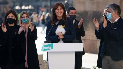 Van de víctimas. Quién sabe a quién quieren dar lástima. Ayer, sin ir más lejos, Laura Borrás, en el centro de la imagen: «Somos un país rico, pero expoliado». Pues si estos señores están pasando privaciones, lo disimulan genial. Nos expolian, nos roban, nos pegan. La gran mentira del independentismo cantada a coro. Como el ladrón que, para escurrir el bulto, corre a gritar ¡al ladrón, al ladrón! Es lógico que Borrás sea la candidata del huido Puigdemont a presidir la Generalitat: está imputada por presunta falsedad documental, fraude, prevaricación y malversación de caudales públicos. Un currículo a la altura del pujolismo. Ay, quién pudiera ser expoliado, pues los expoliados ríen y baten palmas porque ya se ven cuatro años más viviendo de las instituciones. Qué país. Suceda lo que suceda, a estos siempre les acaba tocando el gordo. Y sin necesidad de jugar a la lotería de Navidad. Les basta con jugar con el presente y el futuro de los catalanes.