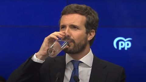 En el PP la cosa está tan así que a Pablo Casado le han puesto el agua reparadora en vaso de tubo, recipiente que normalmente se utiliza para consumir bebidas espirituosas. Pero lo que aquí hay es agua, clara y cristalina. El líder del PP bebe sin reparar en el contenido, quizá porque sabe que el sapo ya se lo tragó el domingo, y también sería casualidad que en este vaso hubiese otro anfibio. Casado habla y bebe ante los barones y baronesas del partido para explicarles que esta victoria que se acaba de producir en Castilla y León no es una derrota. A lo mejor ahí está el problema, en que él se lo crea y el resto del mundo se lo crea. Puede que entre palabra y trago esté a punto de pronunciar las palabras Vox y freír espárragos, pero no lo va a hacer. Puede que esté a punto de decir PSOE y venga, a ver qué pasa, pero no lo va a hacer. Si Abascal y Ayuso fueran una espada y Sánchez una pared, está claro dónde estaría Casado. En el tubo. Y el tubo es muy estrecho.