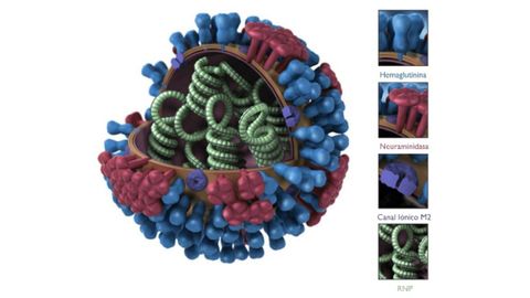 La capacidad de mutación del subclado K es especialmente llamativa. Esta variante acumula hasta once cambios en una proteína clave llamada hemaglutinina, responsable de formar las espículas que recubren la superficie del virus de la gripe (ver imagen). Estas estructuras, que se hicieron muy conocidas durante la pandemia de coronavirus, sobresalen de la envoltura viral y desempeñan un papel esencial en el proceso de infección, ya que permiten al virus reconocer, unirse y penetrar en las células del organismo.