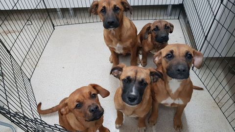 Solo cuatro de los cachorros han pasado la noche en el albergue de animales de Oviedo puesto que una de las hembras ya tiene nombre y familia. Se trata de Cuba, el nombre que Bruno Toledo, uno de los agentes de la Policía Local de Oviedo que participó en el rescate, elegía para su nueva compañera peluda.