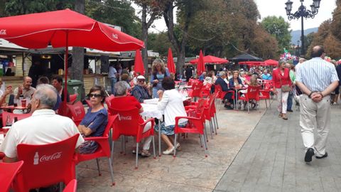 También amigos, desde hace más de cuarenta años, Paz Suárez y sus compañeros, todos de Oviedo, se reúnen cada San Mateo alrededor de mucha comida y mucha sidra. Bollos, tortilla, queso, dulce y hasta un buen bizcocho casero. La bebida, sin embargo, la consumen en los chiringuitos. «La compramos aquí para contribuir con ellos, que se lo merecen mucho», explica. El día, a pesar de nublado, para ellos pinta bueno y largo. «No tenemos prisa porque somos pensionistas», afirma divertida.