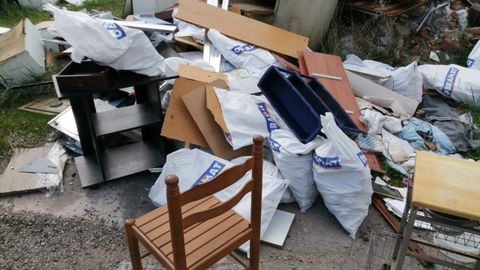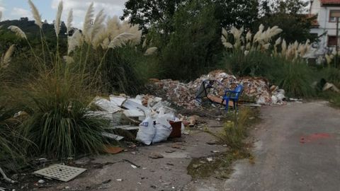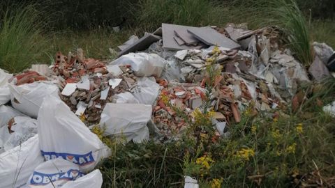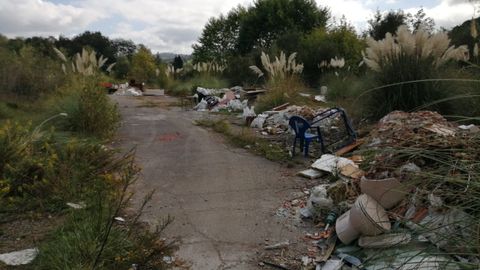 Escombros, restos de muebles viejos y algún que otro producto altamente contaminante e inflamable en caso de incendio se acumulan en una finca situada en esta localidad de la zona rural de la capital asturiana