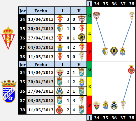 -Sporting: Cuéllar; Canella, Borja, Bernardo, Lora; Cases, Casquero; Trejo; Muñiz, Carmona; y Guerrero.