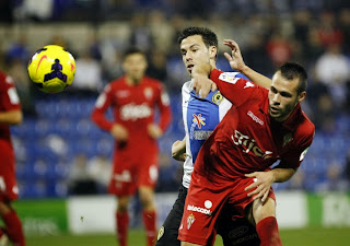 Lo pasaba mal la defensa rojiblanca, con unos desbordados Luis y Canella, y unos centrales muy imprecisos con el balón, al igual que el trío de mediocentros. De todas formas, se llegaba al descanso con 0-1.