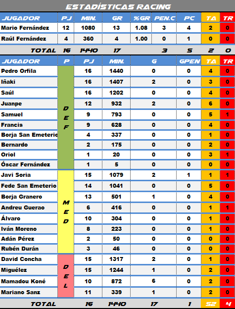 Racing: Mario Fernández; Borja San Emeterio, Orfila, Juanpe, Saúl; David Concha, Javi Soria, Fede San Emeterio, Iñaki; Miguélez y Adan Pérez o Iván Moreno.