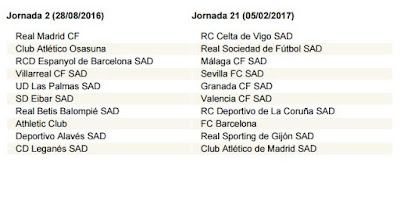 No habrá fútbol en Navidad LaLiga parará tres semanas a finales de año y principios de 2017. La jornada 16 (que el Real Madrid no disputará por encontrarse en el Mundial de Clubes) finalizará el domingo 18 de diciembre y LaLiga no se retomará hasta el 7 de enero, tres semanas después.