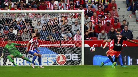 El gol visitante calmó la hiperactividad del Sporting que empezaba a entender mal el partido; el equipo metía ganas pero - fruto de los nervios- tenía excesivas prisas. Garay y Santos bloqueaban con facilidad los balones con superioridad en centímetros respecto a la pareja atacante asturiana. Y cuando podían atacar por el centro, siempre por medio de Rachid, fallaba el penúltimo pase, ese más importante que el último, y que deja al delantero en clave de gol. El Valencia, ya con el marcador a favor, trataba de salir, sin excesivo acierto, al contragolpe y sólo Cancelo advertía.