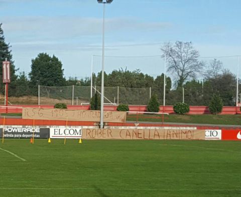 Mientras dos pancartas hacían alusión a la necesidad de ganar y no fallar más siendo todo un Real Sporting de Gijón, la tercera en cuestión mandaba un ánimo a Roberto Canella, que está siendo relegado a la grada al poner Abelardo Fernández a Douglas, Lillo y Lora a pierna cambiado cuando Isma López no es la primera opción para el carril izquierdo.