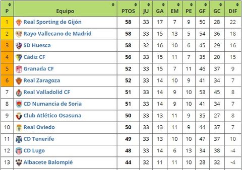 El aplazamiento del partido del Huesca deja a los asturianos en la posición de privilegio a falta de 9 jornadas para el final del campeonato. No obstante, los aficionados sportinguistas aceptarían de buen grado la segunda posición en el mes de junio. De hecho, el Sporting no entraba en la zona de ascenso desde el año pasado.