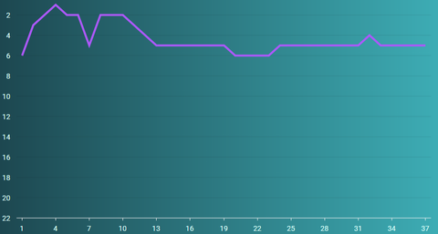Trayectoria de su temporada hasta la jornada 37 con 53 puntos