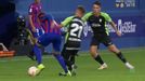 Entraba dentro de las posibilidades, pero no por esperado iba a resultar más sencillo. Gaizka Garitano puso en liza un sistema con tres centrales, con toda la banda para sus carrileros y acumulando muchos jugadores por dentro con una especie de "cuadrado" por detrás de su punta, Fran Sol. Esta puesta en escena condicionó los movimientos y la colocación de un Sporting al que le costó tomar la medida de su rival tanto en ataque como en defensa. Sobre todo en esto último, los de David Gallego sufrieron para frenar el avance de los armeros tanto en salida de balón, donde tenían superioridad numérica, así como cuando los locales llegaban a campo contrario, especialmente cuando los de Garitano lograban atraer por dentro con balón a los asturianos y posteriormente abrían a las incorporaciones de los carrileros, sobre todo de un Toño muy activo por izquierda. La defensa en amplitud complicó mucho la vida al Sporting, con los extremos rojiblancos llegando tarde habitualmente a la cobertura y los mediapuntas del Eibar amenazando a la espalda de los laterales sportinguistas para impedirles saltar sobre poseedor sin pensárselo mucho antes.