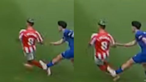 A partir del minuto 1:25 del siguiente vídeo se puede observar a Morcillo empujando al jugador valenciano, así como posteriormente le 'barre' con su pierna izquierda para derribarle: