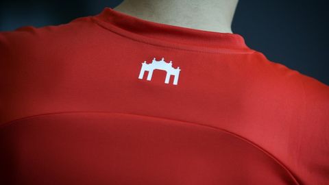 Las camisetas son rojas, amarillo fluorescente y negra, incluyendo en la parte trasera el logo de la clásica puerta de El Molinón - Enrique Castro 'Quini'.